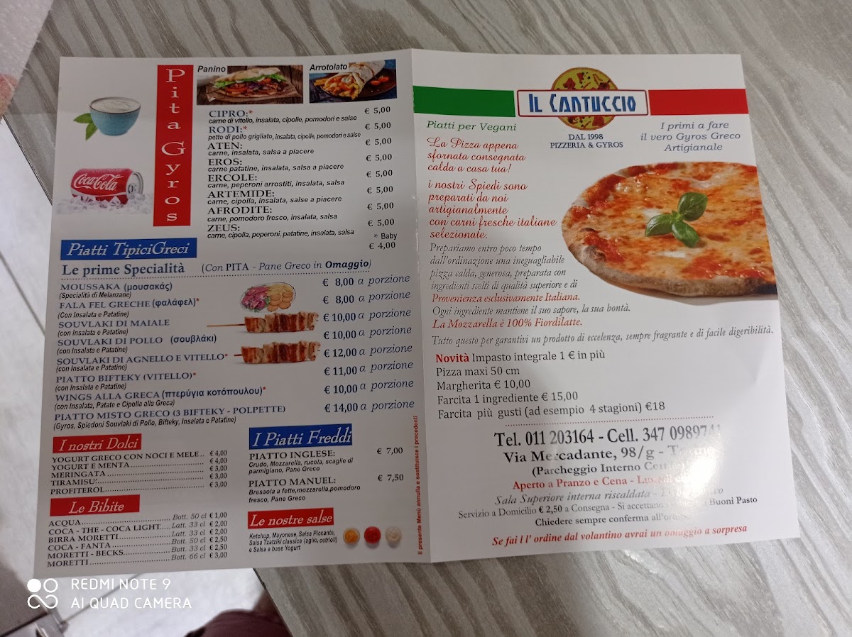 Il Cantuccio PIZZERIA E CUCINA GRECA, nestled in Torino, offers a unique fusion of authentic Greek flavors and classic Italian pizza. The menu shines with a variety of choices, from the creamy, indulgent Pizze Bianche like “Pancetta, Provola e Patate,” to the fresh and vibrant Vegetarian Pizzas such as the “Parmigiana” topped with mozzarella and grilled eggplants. For those with a hearty appetite, the Margherita Maxi stands out as a generous classic.